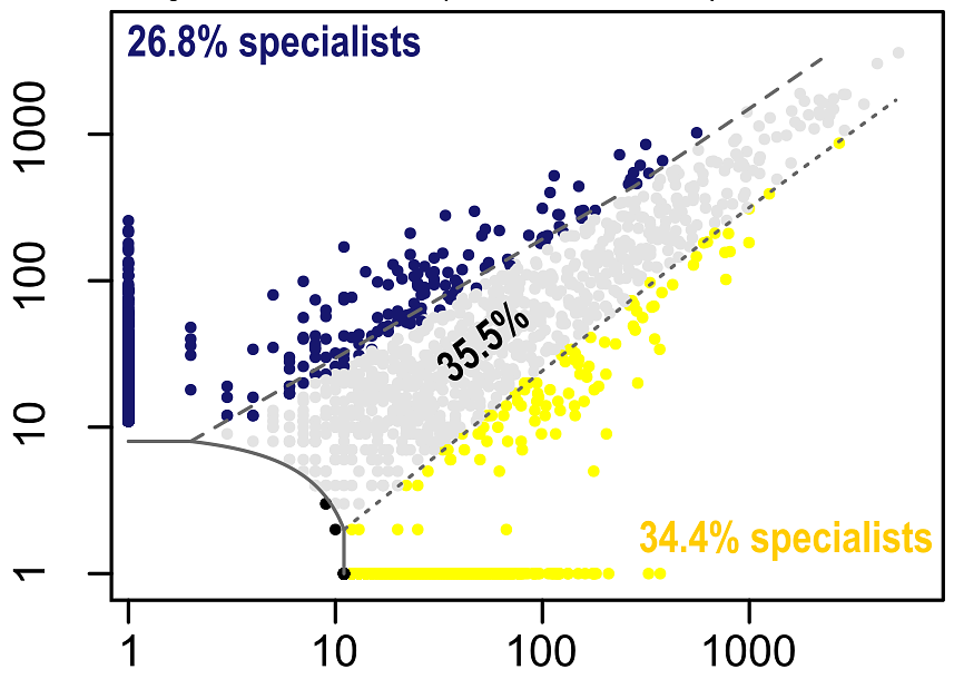 Multinomial species classification method (CLAM) w/ vegan to identify microbial specialists & generalists