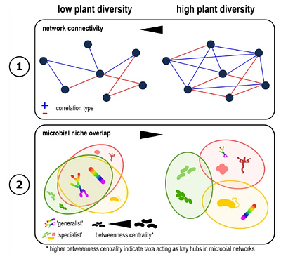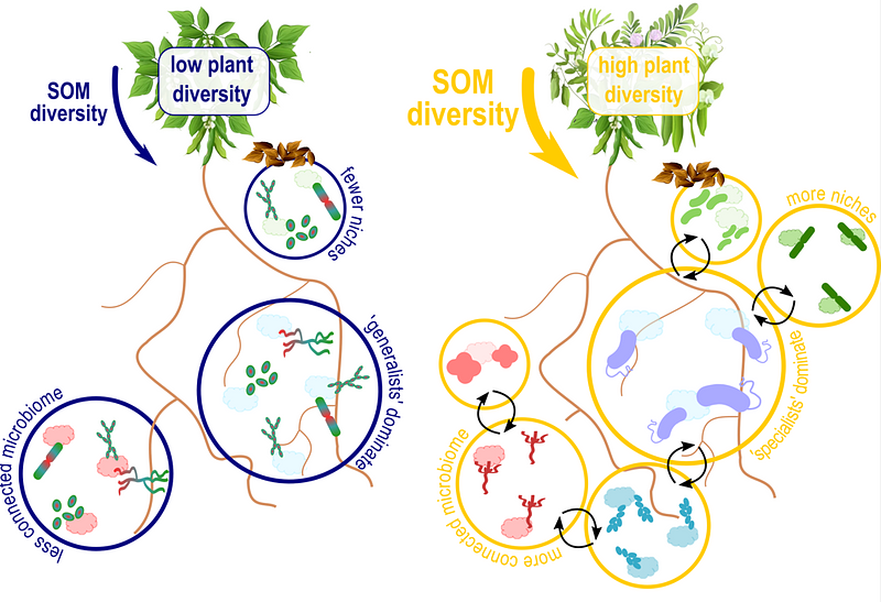 - Plant diversification likely drove microbial niche partitioning, resulting in a greater proportion of microbial specialist taxa as a result of greater SOM input diversity